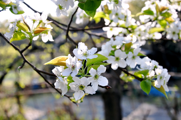 借りている畑の梨の花が、桜の花と調子を合わせて咲きました。細菌が原因の赤星病という梨の葉が毎年発生し、自然農で梨の実を成らすのは難しく、そのため花だけを楽しんでいます。